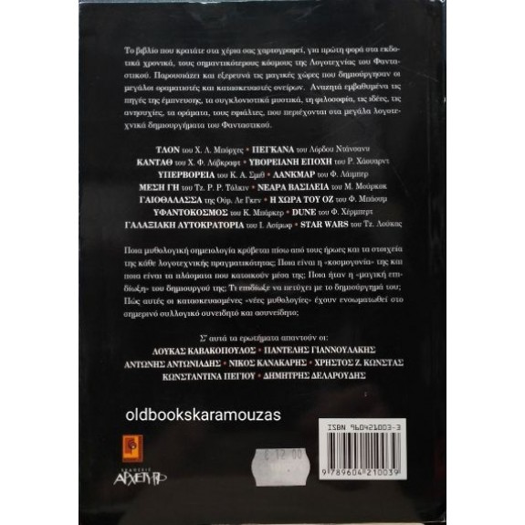 *Το βιβλίο αυτό, μια μοναδική έκδοση, χαρτογραφεί τους σημαντικότερους κόσμους της Λογοτεχνίας του Φανταστικού. Παρουσιάζει και εξερευνά τις μαγικές χώρες που δημιούργησαν οι μεγάλοι οραματιστές και κατασκευαστές ονείρων. Μας ταξιδεύει στις πηγές της έμπνευσης, στα συγκλονιστικά μυστικά, στα οράματα και στους εφιάλτες, που περιέχονται στα μεγάλα δημιουργήματα της φαντασίας.