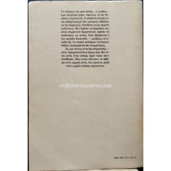 *Το πλάσμα της φαντασίας - ο μύθος - έχει περίσσεια χάρη. Αφήνεις να σε πηγαίνει η έμπνευση. Η αληθινή ιστορία είναι σιδηροτροχιά, δεν μπορείς καθόλου να της ξεφύγεις. Επιπλέον είναι γεμάτη κινδύνους, δεν πρέπει να ξεχάσεις κανένα σημαντικό περιστατικό, πρέπει να αναλύσεις τις αιτίες. Εκεί βρίσκεται η πιο μεγάλη δυσκολία - μοιάζεις να αναζητάς τις πηγές πελώριου ποταμιού. Κάπου αναγκαστικά θα σταματήσεις. Σε μια τέτοια αιτία θα σταματήσω - στην πραγματικότητα ξέρω πως δεν είναι αιτία, ήταν απλώς αρχή όσων ακολούθησαν. Μου είναι αδύνατο να φθάσω στην αρχική αιτία, που χάνεται μέσα στην ομίχλη πολλών γεγονότων.
